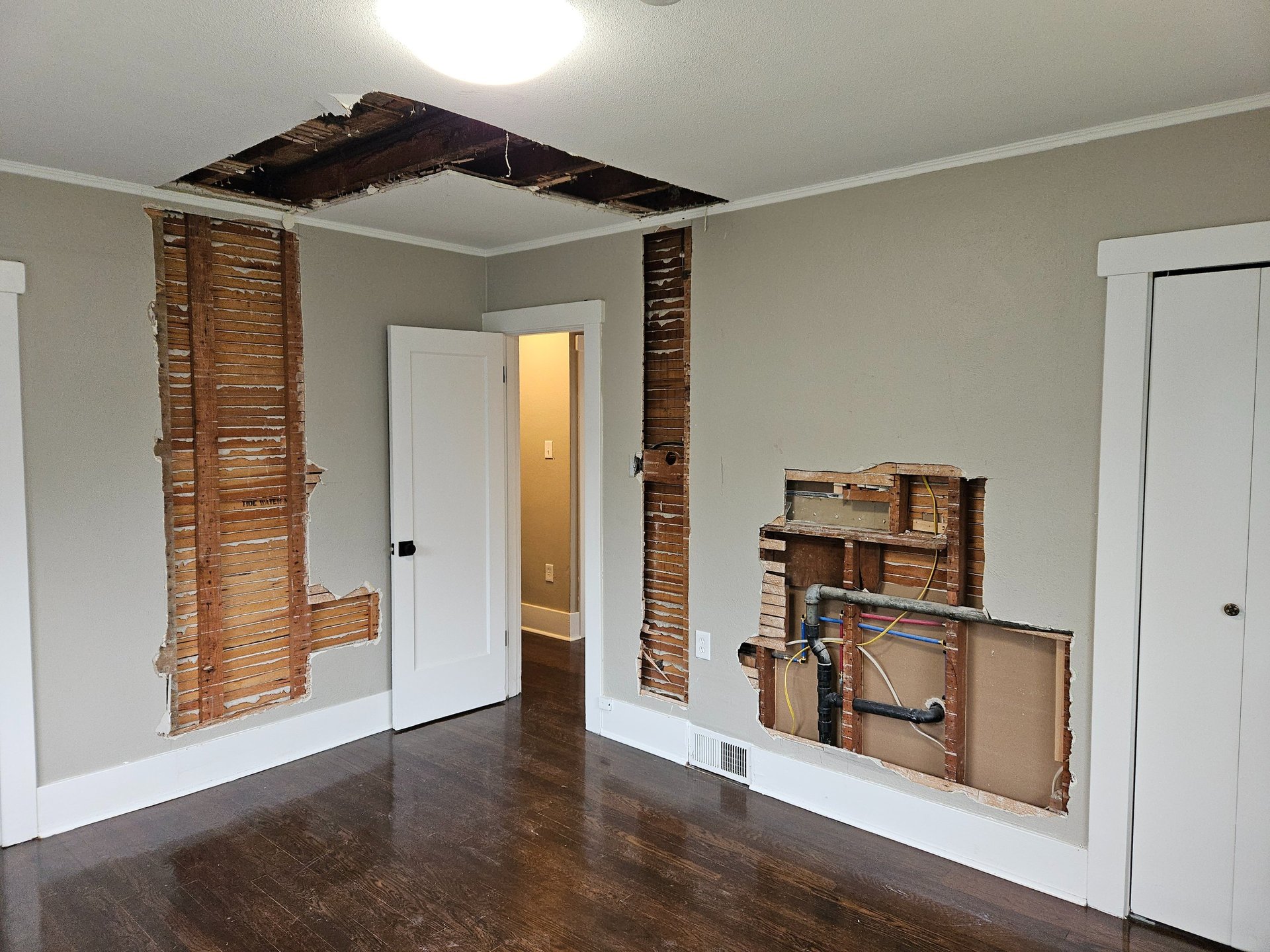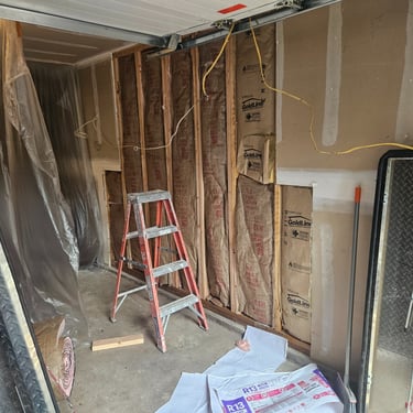 The crew had it torn down to the studs and rebuilt with all new structural components, insulation, fire tape, siding and paint. Our work impressed the customers so much that we went full blast on the space upgrade.