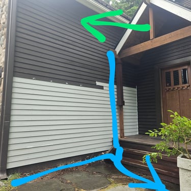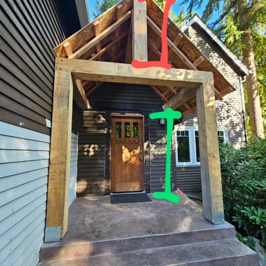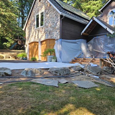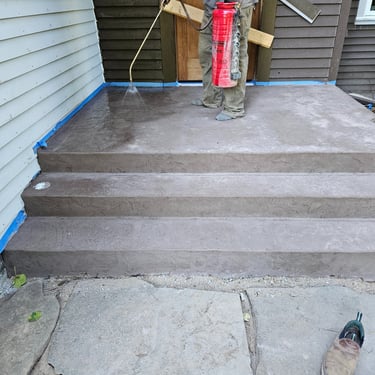 Old wooden porch was rebuild with stamped concrete with incorporated color mix, 6' front porch extension, additional downspout for extra water diversion and massive lumber.